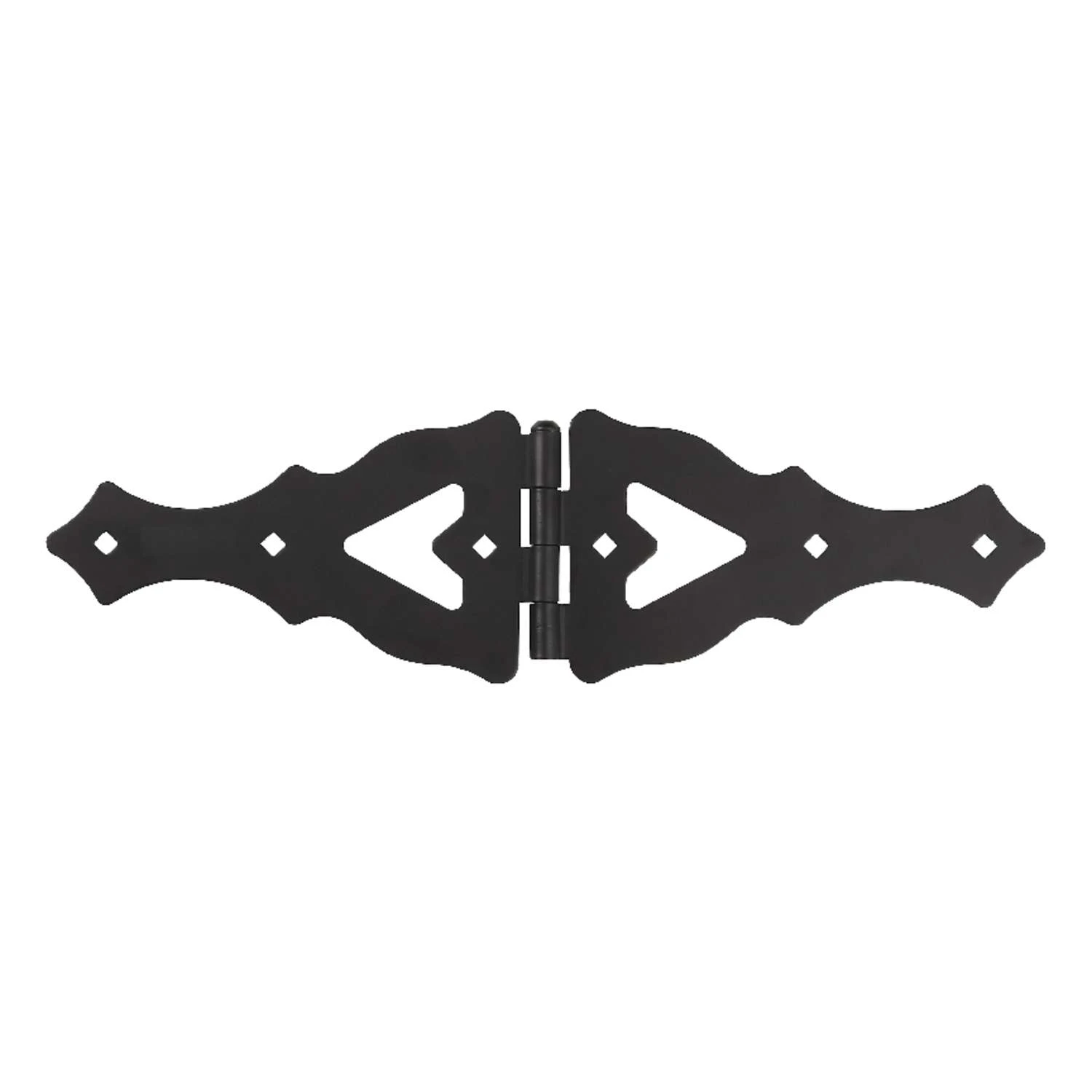 * Use our heavy duty ornamental hardware on a new gate or to upgrade old gate system. For gates, shed, barn or garage doors, etc. * Heavy Duty Ornamental Strap Hinge Black Used with heavy gates Black ornamental design for decorative applications Use with Lag Screws for Gate hinges, Ace #’s 5299045