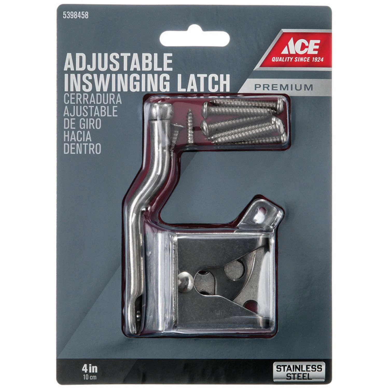 Ace gate latch can be used with inswinging doors, Automatically latches when closes All installation parts are included Stainless Steel
