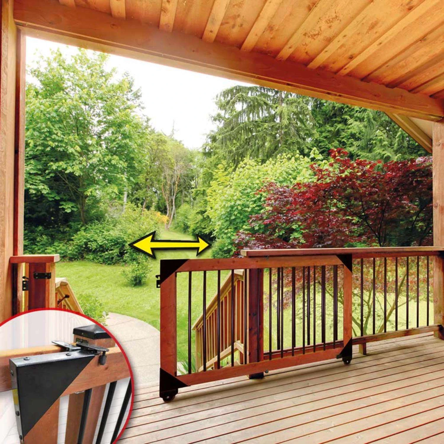 All the hardware to build a sliding gate. Perfect for tight spaces. The mechanism can be hidden by a shelf. Facilitates opening in winter. Can be locked with a padlock. Made of powder-coated steel that offers excellent rust-resistance. Open and close easily Ideal for restricted spaces, lockable and mechanism can be hidden as a pocket door Wood and balusters not included